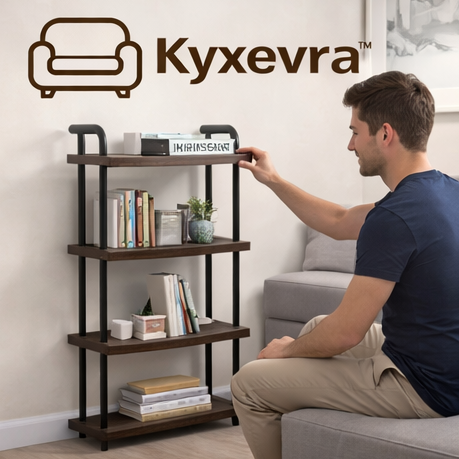 Kyxevra™ Industrial Pipe Bookshelf – Compact 4-Tier Storage Rack
